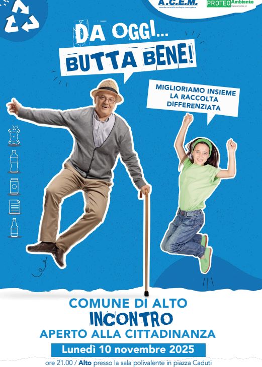 Incontro aperto alla cittadinanza riguardante le novità sul servizio di raccolta rifiuti e raccolta differenziata - Lunedì 10 novembre 2025 ore 21:00