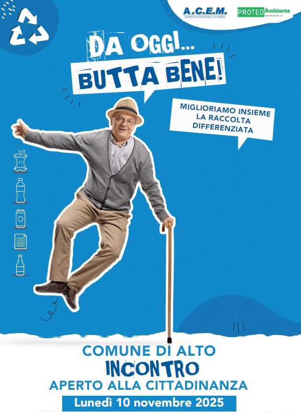 Incontro aperto alla cittadinanza riguardante le novità sul servizio di raccolta rifiuti e raccolta differenziata - Lunedì 10 novembre 2025 ore 21:00